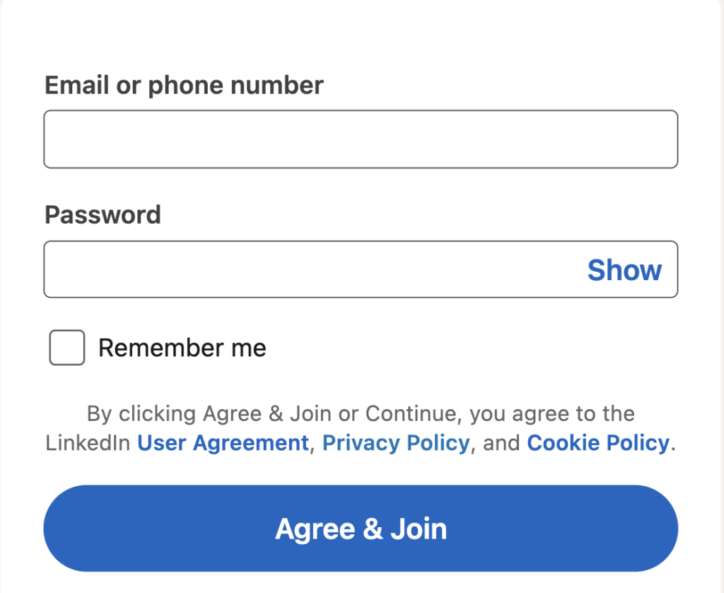 If users create accounts, it’s best to link your Terms near the signup button. Many businesses also ask users to confirm they’ve read and agreed to the Terms during registration.